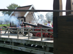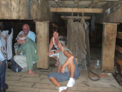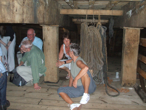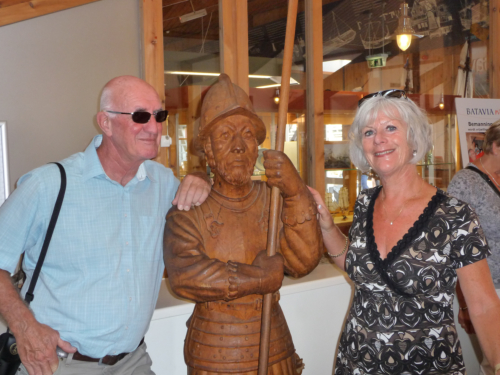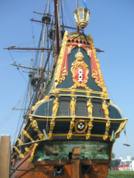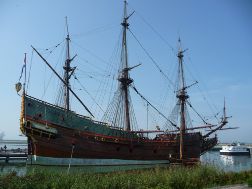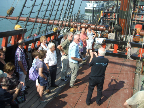 Dit is het schip Batavia zoals het in de haven van Bataviastad ligt.