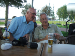 Henk en Hennie bekeken het fotototoestel (of het glas bier?).
