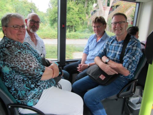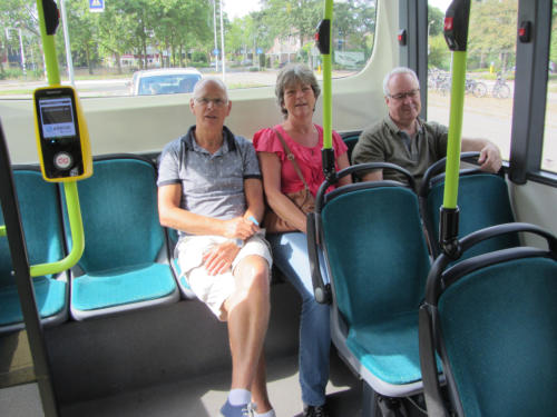 met de bus.