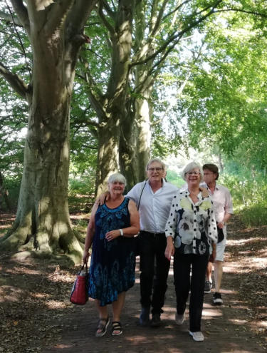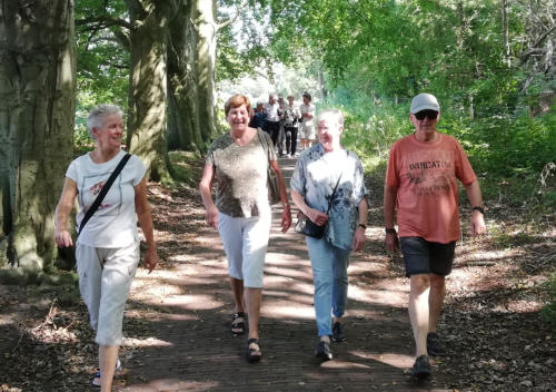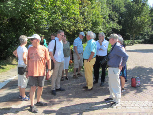 Verzameld op de parkeerplaats een discissieover welke weg men zou wandelen nar het museumde korte of het lange pad.
