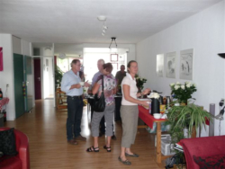 Gastvrouw Marike wijst ons waar de koffie staat,