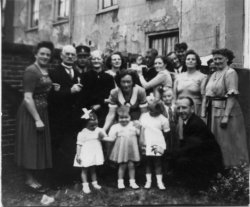 De hele familie in de tuin van Opa en Oma de Roos. Tulpstraat 13, Utrecht.
